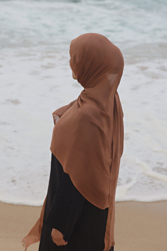 The Winter Sheila is made of a soft viscose blend with a smooth, seamless finish. There is no stitching across the edge of these sheilas - allowing them to frame the face perfectly.