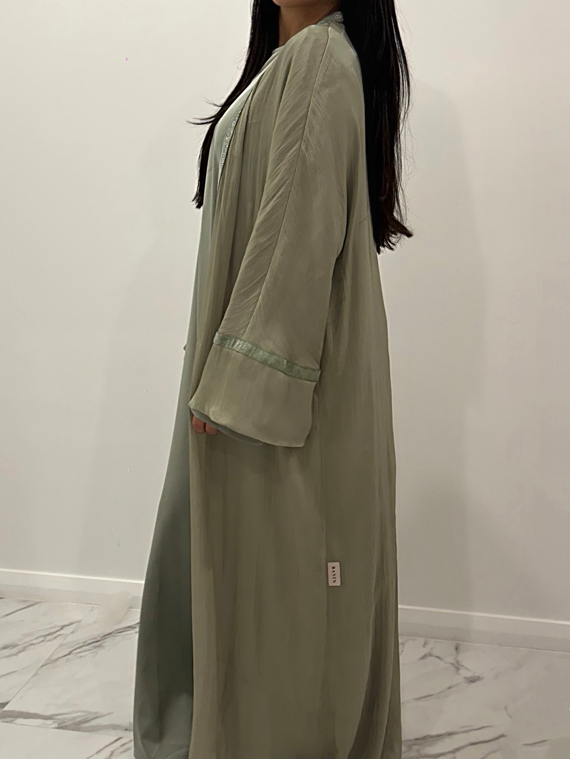 Introducing the Sage Velvet Sparkle Abaya, an ensemble meticulously crafted to adorn you in elegance, class, and modesty.